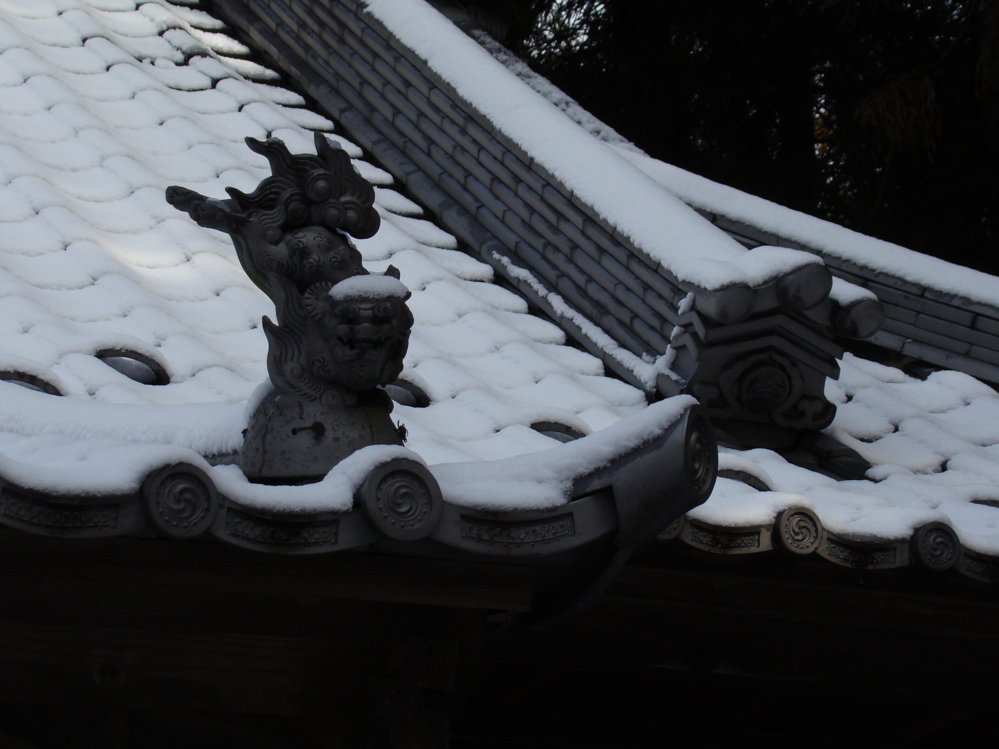 冬から春へ、瓦と自然のコラボレーション